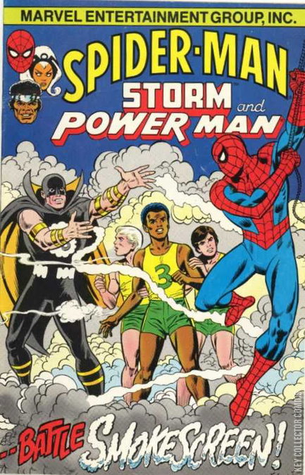 Spider-Man, Storm, and Power Man help a young track runner stop smoking and defeat a villain named Smokescreen. Smokescreen is trying to get athletes hooked on smoking, then betting against them, knowing that their smoking will prevent them from winning any meets.This is a free promotional book given to children by the American Cancer Society to help raise awareness about the dangers of smoking.No credits are given for story or artwork.