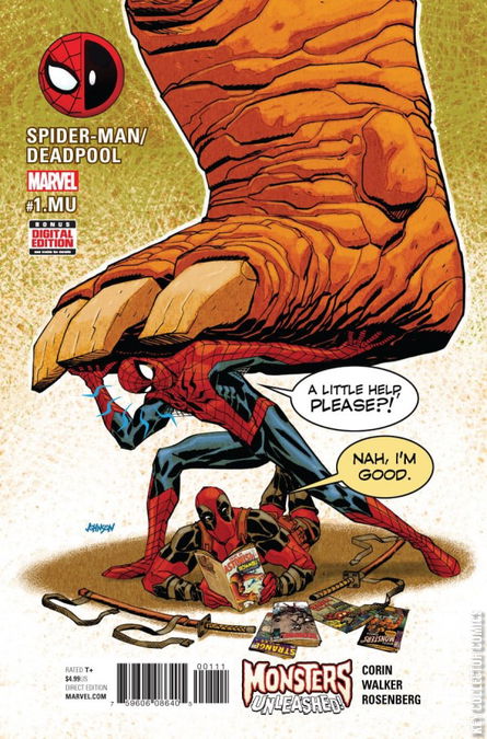 A MONSTERS UNLEASHED TIE-IN! Spider-Man and Deadpool find themselves face-to-face(-to-face?) with one of the dozens of monsters smashing and stomping their way through the Marvel Universe! Ever the stalwart hero, Spider-Man has to use his powers (and responsibilities) to fearlessly fight the freakish monsters, saving many civilians at great cost to himself! Meanwhile, Deadpool is about as helpful as he usually is.