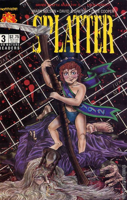 Home / Northstar / Splatter / Splatter #3 Northstar Released February 1992 Splatter #3 Add to Collection Want It Synopsis No synopsis available. Issue 3 of 8 Add to Collection Buy it on eBay Buy on eBay Low $1 Mid $2 High $3 Synopsis No synopsis available. Details Series Splatter Cover Date February 1992 Pages N/A UPC N/A Cover Price $2.75 Final Order Cutoff N/A Creators No creators listed. Price Guide Log in or subscribe to access detailed graded price information and market insights. Log In Subscribe