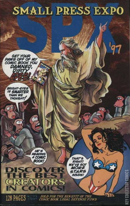 Every year in Bethesda, Maryland, some of the greatest talents in the small press world gather for the Small Press Expo. This year, the talented crew have come together to produce on incredible anthology, dedicated to preserving their right) a produce cool comics...and your right to mad them! WARNING! This low-priced, 128-page book bursts with inspiring new work by over 40 of comics' greatest small press creators! This book is so thick that it has to have two front covers, in a flip-book format, by Frank Cho and James Sturm. Be entertained by page after page of wonderful comics for one low price-and every penny of profit goes to the Comic Book Legal Defense Fund. Finally, an anthology big enough to kill a man for a good cause! Features work by Jessica Abel, Donna Barr, Art Baxter, Ruben Balling, Ed Brubaker, Ivan Brunetti, Joe Chiappetta, Frank Cho, Brian Clapper, Roberta Gregory, Paul Grist, Allan Gross, Ikn Hart, Dean Haspiel, More Hempel, Sam Henderson, James Kolchalb, David talky, Jon Lewis, Jason Lutes, Matt Madden, Josue Menjiver, Linda Medley, Josh Neufeld, Dan Parsons, Jesse Reklaw, Chris Staros, James Sturm, Colin Upton, Charles Vess, Mark Wheatley, Shannon Wheeler, Mack While, Joe Zabel, and many more. A cornucopia of amazing creators, all for a mere pittance!