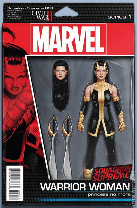 Now that Warrior Woman has revealed her true identity to the Squadron Supreme, we focus on her life -- her past, present and future -- in a special solo issue. Now the ruler of her own country and sovereign leader of the Alien Myriad, Warrior Woman plans an even greater feat of world conquest. But to do this, it will first require a vision from the Profiler...and the resurrection of Namor, the Sub-Mariner. Also, learn the surprising fate of the Power Princess whose identity Warrior Woman stole. CIVIL WAR II TIE-IN
