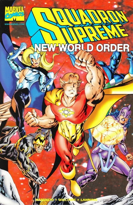 Returning to their homeworld after months of exile in a parallel dimension, the Squadron Supreme encounters the Blue Eagles, Nighthawks, Mysterium, Amphibian and Skymax the Skrullian Skymaster in this 48-page tale. Hyperion, Power Princess, Whizzer, Doctor Spectrum, Moonglow, Skylark, Shape.