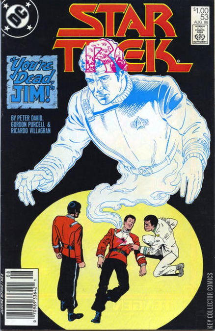 Uhura, Scotty and Chekov remember their captain as Kirk verges near death on the operating table in "You're Dead, Jim". Part 1 of 3, continued next issue.