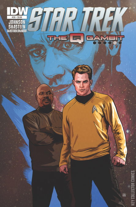 It's the penultimate chapter of the 'The Q Gambit'! Captains Kirk and Sisko must work together to fight back against the forces of the Dominion! Meanwhile, Spock attempts to free the Enterprise and her crew from the clutches of the nefarious Dukat! And just what is Q planning for everyone involved? The fate of the galaxy hangs in the balance in this all-new story produced in association with STAR TREK writer/producer Roberto Orci!
