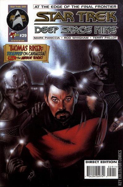 Sisko travels to Cardassia Prime to negotiate Thomas Riker's (Defiant). Cardassian scientists are studying Riker to discover the secret of his duplication (Second Chances [TNG]). Their objective is to create an army of duplicates. A genetics specialist helping with the study doesn't want her people to have such a weapon. Stardate 48979.1