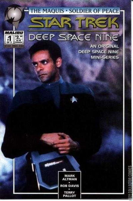 Bashir leaves for a vacation on Risa. On the transport ship he meets Tessa Blake. She invites Bashir to her room for an intimate encounter with a phaser. Bashir awakens aboard a Maquis freighter. Tessa needed a doctor for a Maquis assault on a Cardassian prison camp, where prisoners from missing Federation and Maquis vessels have been reported. The assault proceeds far too easily and the entire force is captured by Cardassians. Stardate 48573.3 This issue is a notable early example of the practice of releasing a variant cover, in this case a photo variant. Besides the regular cover illustration, a collectible variant with a photo of Siddig el-Fadil from the set of filming DS9 episode: "The Maquis" was available. Comics Buyer's Guide 1994 Fan Awards ballot