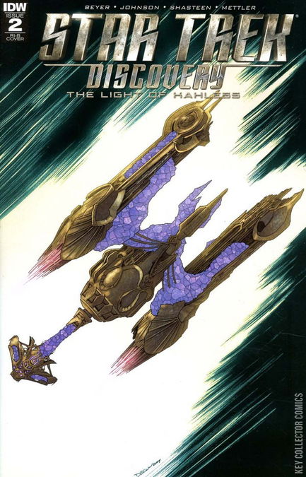 The STAR TREK event of 2017 continues with this exclusive tie-in comic to the blockbuster new television series! Secrets are revealed that will change the course of the galaxy forever! Co-written by Discovery writer and Trek novelist Kirsten Beyer and longtime Trek comic book writer Mike Johnson! Art by Star Trek comic book veteran and fan-favorite Tony Shasteen, of the hit series, Boldly Go! Explore the strange new worlds and new civilizations of Discovery each month! Each issue features a 'ships of the line' cover by Declan Shalvey and Jordie Bellaire! A great first look at the new ships of Discovery!