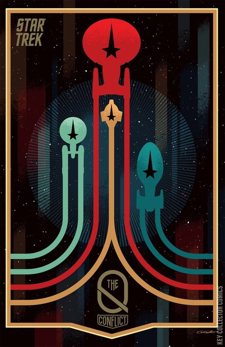 As the clash of the godlike beings continues, the captains face off in a series of war games that become much more lethal when Q introduces a fifth competitor-a Doomsday Machine! The biggest Star Trek crossover ever continues here. The crews of The Next Generation, The Original Series, Voyager, and Deep Space 9 come together to face their biggest challenge yet! Written by Star Trek: TNG: Mirror Broken scribes Scott & David Tipton! All the captains together for the first time!