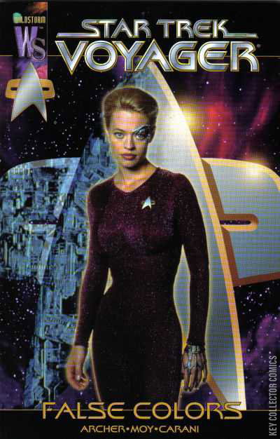 A run-in with a new ninja-like race, a war over natural resources, and a device that has the potential to cause interdimensional havoc, STAR TREK comic-book fans are in for surprises beyond this galaxy as WildStorm launches a new line of STAR TREK comics, beginning with STAR TREK: VOYAGER - FALSE COLORS, a Prestige Format one-shot focusing on the popular character Seven of Nine. STAR TREK: VOYAGER - FALSE COLORS tells of an encounter between the Starship Voyager and a mysterious craft. It looks like a Borg, sounds like a Borg and acts like a Borg, so it must be a Borg, right? The answer to that question is just one of the surprises in store in this special issue, written by Star Trek novelist Nathan Archer (co-author of the novel Spider- Man: Goblin Moon) with art by Jeffrey Moy and W.C. Carani (LEGIONNAIRES).