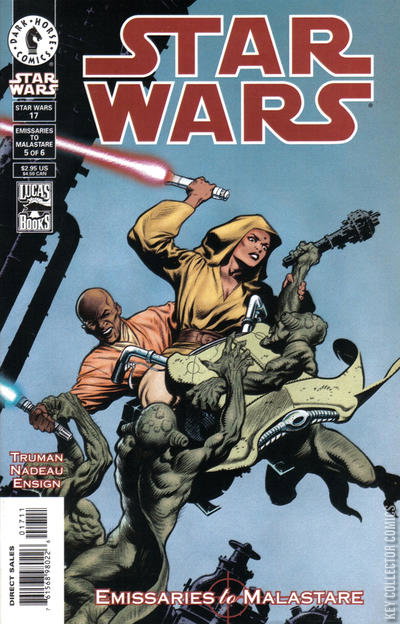 After encountering monstrous akk dogs under the command of the Red Iaro Terrorists, Mace Windu and his former Padawan Depa Billaba go in search of a smuggling ring that's transporting the animals from Mace's homeworld and turning them into savage pitfighting beasts. But the corridors and depths of the Smuggler's Moon are havens of scum and villainy--no place for Jedi! Note: This issue stars the first appearance of popular Star Wars character Quinlan Vos.