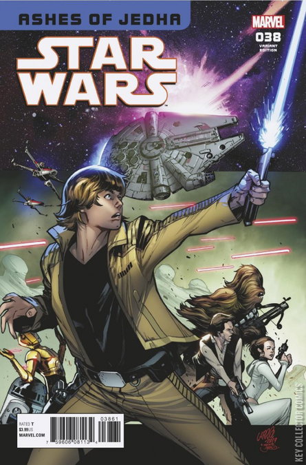 THE ASHES OF JEDHA, PART I KIERON GILLEN’S FIRST ISSUE ON STAR WARS! The Rebel Alliance turns its attention to the shattered planet of Jedha! Once the site of great significance to the Jedi, Jedha was left in ruins when the Death Star annihilated the Holy City there. Now, new series writer Kieron Gillen joins artist Salvador Larroca to bring Luke, Leia, Han, and the rest to the remains of the tragic victim of the Empire’s fury!