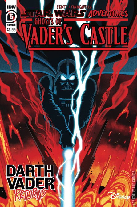 Join Cavan Scott, Francesco Francavilla, and a host of classic Star Wars artists in the epic conclusion to the Vader's Castle saga! Star Wars Adventures: Ghosts of Vader's Castle is a horror-packed, star-studded, five-week event guaranteed to haunt your dreams. In the final Vader's Castle tale, Lina, Hudd, Skritt, and Jaxxon race to Mustafar to save Milo and Crater. Will the group be able to fight the ghosts that still haunt the castle, or will the galaxy forever be bound to suffer from the wrath of the GHOSTS OF VADER'S CASTLE?