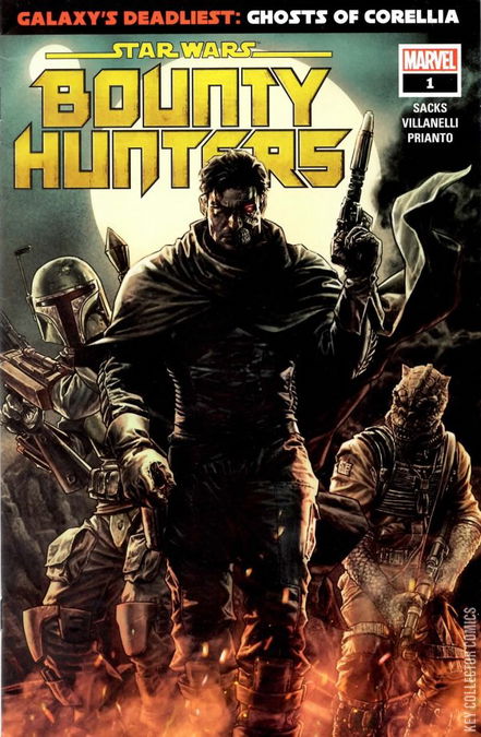 GALAXY'S DEADLIEST, PART I: GHOSTS OF CORELLIA Years ago, VALANCE and fellow bounty hunters BOSSK and BOBA FETT took on a mission that went sideways in a bad way after Valance's mentor, NAKANO LASH, violently betrayed them. Valance's team barely escaped with their lives. He never thought he'd face his old mentor ever again...until Lash finally resurfaces under mysterious circumstances. Every bounty hunter in the galaxy wants a piece and Valance is hell-bent on getting to the prize first. He has score to settle—but so does Boba Fett! Ethan Sacks ( OLD MAN HAWKEYE , GALAXY'S EDGE ) and Paolo Villanelli ( VADER: DARK VISIONS and JEDI FALLEN ORDER - DARK TEMPLE ) are teaming up to bring you the bounty hunter adventure you've been waiting for!