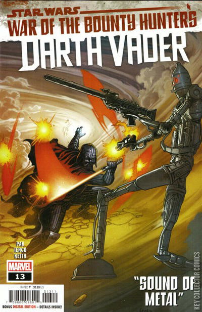 SOUND OF METAL DARK LORD VS. DARK DROID! DARTH VADER and OCHI OF BESTOON embark upon a search for the carbonite-frozen body of HAN SOLO. Get ready for intrigue, betrayal and action in the heart of HUTT SPACE with the explosive reappearance of EVERYONE’S FAVORITE ASSASSIN DROID, IG-88! And a shocking cliffhanger brings the shadows to life! WAR OF THE BOUNTY HUNTERS TIE-IN