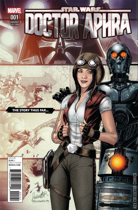 BECAUSE YOU DEMANDED IT! Following the blockbuster finale of Darth Vader #25, the fan-favorite character begins a new journey in STAR WARS: DOCTOR APHRA #1 - the new ongoing series coming this December! From superstar writer Kieron Gillen (Darth Vader) and fan-favorite artist Kev Walker (Marvel Zombies) comes Marvel's first ongoing series starring an original character created in the comics! Following her time in the clutches of Darth Vader, Doctor Aphra has barely escaped with her life. If he ever learns of her survival, he'll hunt her to the ends of the galaxy. But for now, it's time for a return to what she does best. With the droids 0-0-0 and BT-1 in tow, she's off in search of rare artifacts from the galactic center to the Outer Rim and everywhere in between. Aphra's got debts to pay after all. Just as long as she can stay one step ahead of the Empire, some Bounty Hunters and just about everyone else in the galaxy!