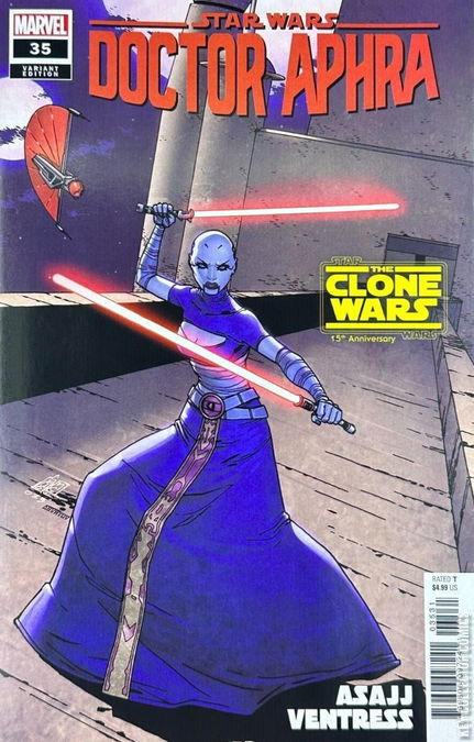 LEGACY ISSUE #75! A DARK DROIDS TIE-IN! Sent by DOMINA TAGGE to investigate a series of strange droid malfunctions, DOCTOR APHRA faces a deadly enemy from the past. A horde of CLONE WAR-ERA PROTOTYPE BATTLE DROIDS designed by Domina herself! Rated T