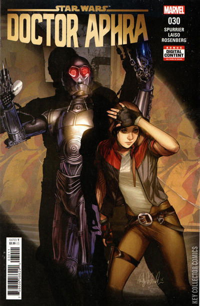 “WORST AMONG EQUALS” PART 5: WHEREIN: PUBLIC RELATIONS DISASTER! • DOCTOR APHRA’s race across an alien city continues, pursued by innumerable enemies – not least the EMPIRE’S villainous propaganda division. • But with the timer ticking down on the bomb in her throat, the truest horror might come from some unscheduled soul-searching. • Could it be that her psychotic droid companion TRIPLE-ZERO is the closest thing she has (or deserves) to a true soulmate?
