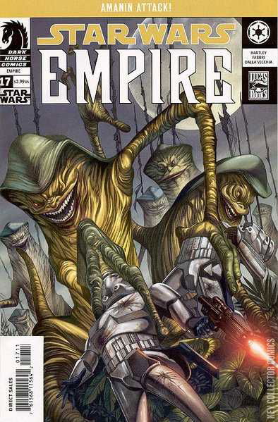 Imperial Lt. Janek Sunber wanted to see action, and now his wish has come true--in spades! Sunber's infantry regiment on the jungle world of Maridun is cut off from the rest of the Empire. Their communications have been destroyed, and their way out of the jungle is blocked by thousands of hostile native Amanin. Hopelessly out-numbered, they must choose between combat or surrender--but either decision may mean death! Empire takes a look at the Star Wars galaxy from the point of view of the Imperials in this action-packed, three-issue arc!