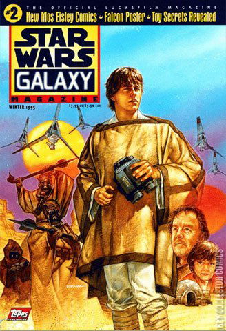 Star Wars Galaxy Magazine 2 is the second issue of Star Wars Galaxy Magazine. It was published by Topps in January 1995. The Deluxe Collectors' Edition of issue 2, exclusive to subscribers and comic stores, came polybagged with the The X-Files Ashcan comic book, a prototype Topps Star Wars MasterVisions card, and a Topps Finest chromium trading card. This issue also included a Millennium Falcon fold-out poster article.