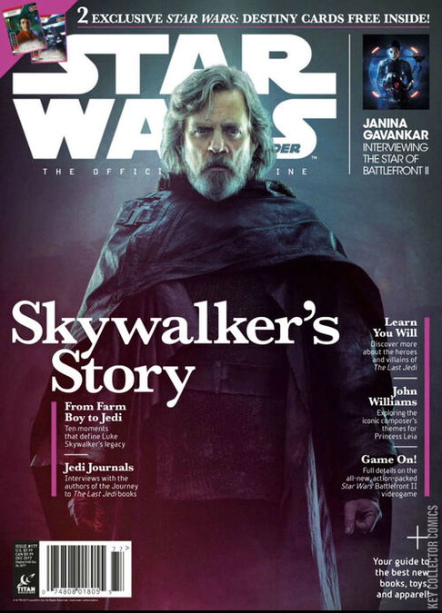 Star Wars Insider 177 is the 155th issue of the Star Wars Insider magazine and the eighty-fourth issue published by Titan Magazines. It was released on November 28, 2017. Among other things, it covers rare production photos revealed for the first time from the vault, coverage on the musical score by John Williams, a Jedi Quiz Master section, facts about the Star Wars saga, coverage of The Last Jedi, including reveals about the heroes and villains of the film, and some story coverage of Star Wars Battlefront II.