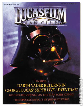 The Lucasfilm Fan Club Magazine 20 is the twentieth issue of The Lucasfilm Fan Club Magazine, later rebranded as the Star Wars Insider. Issue 20 was published in Fall 1993. Features "George Lucas' Super Live Adventure: An Action-Packed Spectacle Tours Japan" "How A Classic Newspaper Strip Became A Comic Book Series: The Story Behind Classic Star Wars" "Inside New Collectables From Star Wars and Indiana Jones" "The Special Effects of Jurassic Park" "The Latest From LucasArts Entertainment Co."