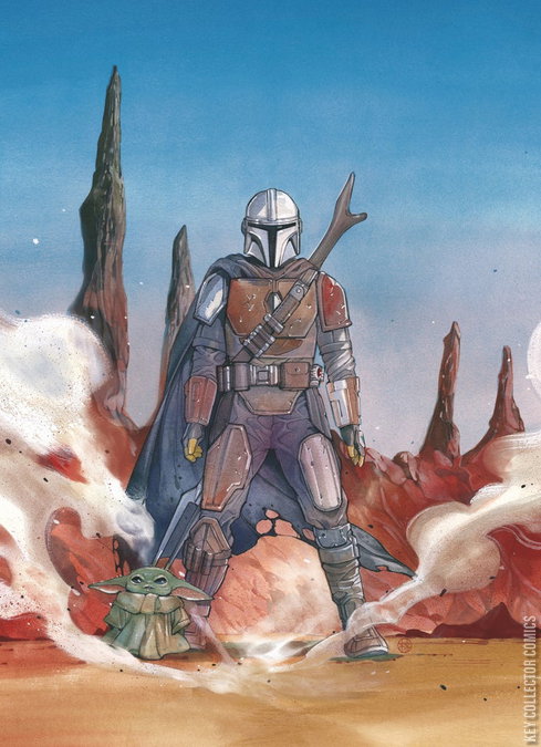 - Variant virgin cover art by Peach Momoko featuring Din Djarin and Grogu