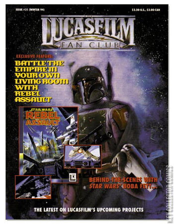 The Lucasfilm Fan Club Magazine 21 is the twenty-first issue of The Lucasfilm Fan Club Magazine, later rebranded as the Star Wars Insider. Issue 21 was published in Winter 1994. Features "Radioland Murders: A New Murder Mystery Comedy From George Lucas" River Phoenix tribute "Jeremy Bulloch: Behind the Mask of Boba Fett" "Rebel With A Cause: Star Wars Rebel Assault" Lucasfilm's Latest "Book Review: A Guide to the Star Wars Universe" "Collecting Star Wars Memorabilia" "Kathy Tyer's Truce At Bakura" "Straight From The Horse's Mouth: Dark Horse Comics"