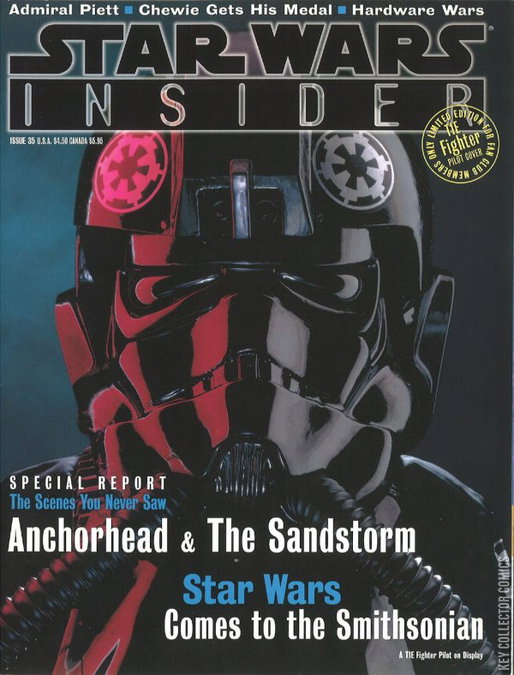 Star Wars Insider 35 is the thirty-fifth issue of Star Wars Insider magazine and was the first published by Fantastic Media, Inc. It was released in September 1997. Starting with issue 35, Star Wars Insider began bimonthly publication. Issue 35 was also the first Star Wars Insider issue to offer multiple cover variants to readers: a newsstand version featuring a Tusken Raider and a subscriber-exclusive version featuring a TIE fighter pilot.