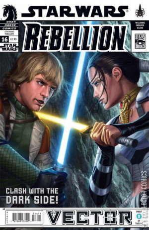 Vector, Part 8 of 12 - Darth Vader successfully lures Luke Skywalker and Princess Leia into a trap that could cripple the Rebel Alliance, as "Vector" -- the most important Star Wars event of 2008 -- concludes its third arc, setting the stage for the final galaxy-shaking showdown in Star Wars: Legacy! On the dark surface of a desolate moon, Luke and Leia meet their first Jedi since Obi-Wan Kenobi, only to realize too late this Knight of the Old Republic is far different than their fallen friend -- twisted by the Sith's Muur Talisman and enraged by Darth Vader! Together, Luke and Leia must make a choice with far-reaching consequences, not just for themselves, but for the fate of the entire galaxy!