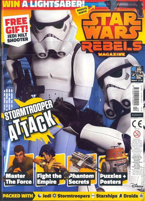 Star Wars Rebels Magazine 4 is the fourth issue of Star Wars Rebels Magazine. It was originally published by Egmont UK Ltd in the UK on April 22, 2015, and by Titan Magazines in the US on April 19, 2016. The UK version includes the comic story Kallus' Hunt by Martin Fisher and Bob Molesworth, while the US version includes the comic stories Eyes on the Prize and Sabotaged Supplies.
