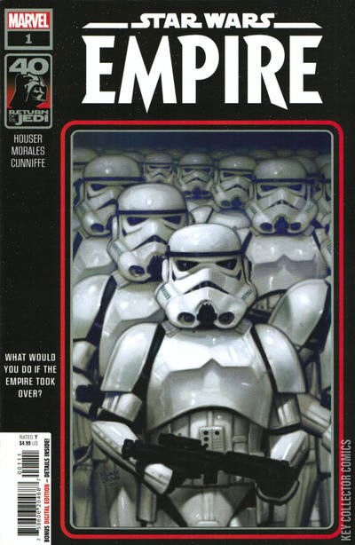 WHAT WOULD YOU DO IF THE EMPIRE TOOK OVER? As operations begin to take shape on the moon of ENDOR, a technician must figure out how to live under the control of THE EMPIRE. But if he can't stay out of trouble, what will the Empire do with him? Continuing the 40TH ANNIVERSARY celebration of RETURN OF THE JEDI, JODY HOUSER & JETHRO MORALES pull back the curtain of the Empire like never before!