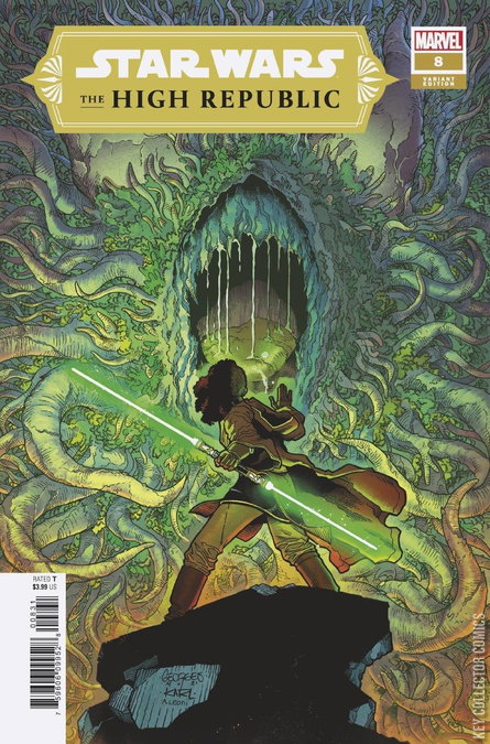 HEART OF THE DRENGIR, CHAPTER III: THE ROOT OF TERROR THE BATTLE AGAINST THE DRENGIR REACHES ITS THRILLING CLIMAX! AVAR KRISS has gathered a team of JEDI to take the fight to the DRENGIR deep in WILD SPACE, but KEEVE TRENNIS is nowhere to be seen. Are other forces at work on the Drengir’s deathworld? Guest-starring a host of High Republic Jedi! COHMAC VITUS! REATH SILAS! THE STAR HOPPER PADAWANS!