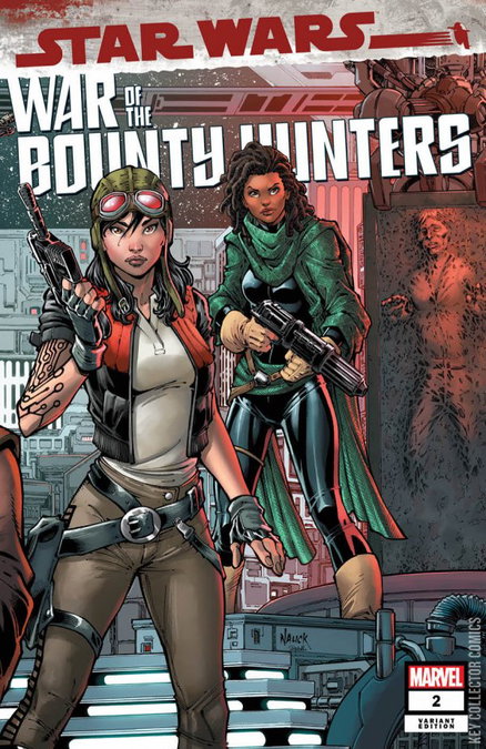 WAR OF THE BOUNTY HUNTERS, PART II: THE SCOUNDREL'S BALL THE BIGGEST COMIC EVENT OF THE STAR WARS GALAXY CONTINUES! Notorious bounty hunter BOBA FETT has tracked his missing prize—heroic smuggler HAN SOLO, frozen in carbonite—to the remote, frozen world of JEKARA. But representatives from many of the galaxy’s most powerful factions have gathered, and they all want the same thing—Solo. Things go from bad to worse, as Boba Fett realizes that he himself has become almost as valuable to the galaxy’s hunters as Han Solo, and he must turn to the least trustworthy person in the galaxy for help... DOCTOR APHRA…