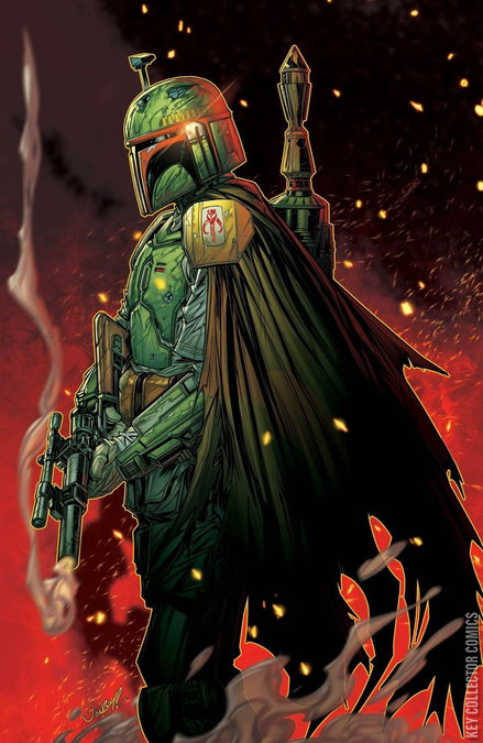 WAR OF THE BOUNTY HUNTERS, PART III: THE CRIMSON BLADE WINNER TAKES ALL! Terrifying, implacable Dark Lord of the Sith DARTH VADER has laid claim to HAN SOLO, who is frozen in carbonite. But the great, exalted JABBA THE HUTT also believes that Solo is his property. It’s the galaxy’s baddest gangster versus the Empire’s most powerful enforcer, and neither is backing down. BOBA FETT is caught between a Sith and a Hutt...and it’s WINNER TAKE ALL.