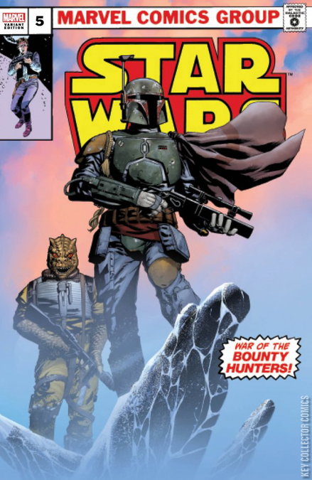 WAR OF THE BOUNTY HUNTERS, PART V: ATTACK AT DAWN THE ULTIMATE FINALE! THE BIGGEST EVENT OF THE YEAR CHANGES THE FACE OF THE GALAXY! Everything and everyone in the galaxy is against bounty hunter BOBA FETT, from Sith Lords to Hutt rulers to the mysterious CRIMSON DAWN. He can’t succeed. There’s no way he can regain HAN SOLO, escape the bounties on his head, and survive to get his prize to JABBA THE HUTT and get paid. But HAN SOLO belongs to him, and no one will take him away. With a shocker of an ending that sets up a revolutionary new status quo for STAR WARS COMICS!