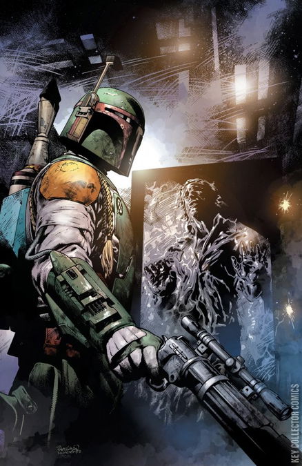 PRECIOUS CARGO THE STAR WARS COMIC EVENT YOU’VE BEEN WAITING FOR! The notorious bounty hunter BOBA FETT has finally landed his greatest prize—HAN SOLO, frozen in carbonite for easy transport. Fett will bring the smuggler to TATOOINE to collect the massive bounty placed on Solo’s head by the fearsome crime lord JABBA THE HUTT. Sounds easy. What could go wrong?