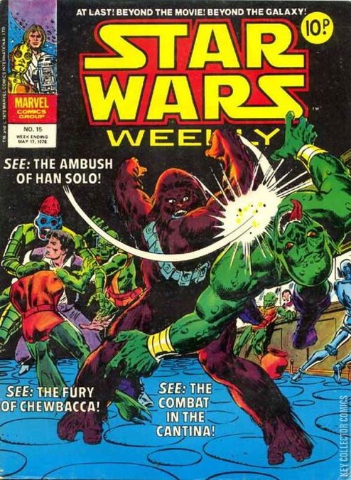 Star Wars Weekly 15 is the fourteenth issue in the Marvel Star Wars UK series of comics. This issue includes the first half of the story printed in the US as Star Wars 8: Eight for Aduba-3.