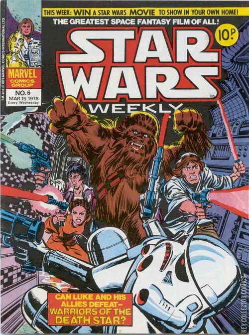 Star Wars Weekly 6 is the sixth issue in the Marvel Star Wars UK series of comics. Like the American Marvel Star Wars series, it started with a multi-part adaptation of Star Wars: Episode IV A New Hope, but split into twelve parts instead of six. This includes the second half of the story printed in the US as Star Wars 3: Death Star!.