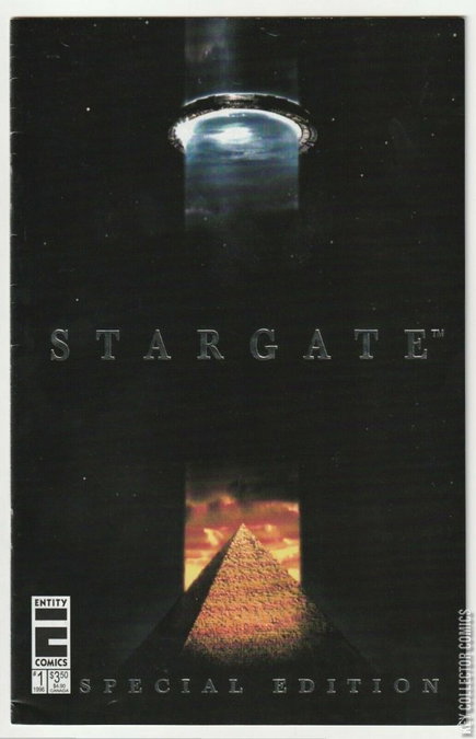 Silver foil title Special Edition cover. Story by Don Chin. Art by Shelby Robertson and Raff Ienco. The official comics adaptation of the original film that spawned the Stargate sci-fi franchise. Colonel Jack ONeill and scientist Daniel Jackson get caught up in an interstellar war after an ancient portal is unearthed in Egypt. The ancient sun god Ra is revealed as an extraterrestrial, and he still has designs on Earth. Includes a four-page photo gallery featuring color stills from the film starring Kurt Russell and James Spader.