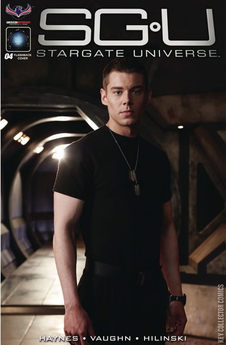The discovery of Ancients in hibernation on board the Destiny along with previously unknown technology has brought Colonel Young, Dr. Rush, Eli and the others to the precipice of a major challenge in their journey, one filled with as much potential danger as they've ever faced. Stargate Universe comic books continue the narrative from where the TV series left off! Stargate Universe #4 comes with three covers - Main Cover by Greg LaRocque, Photo Cover, and a special Premium Limited Edition Flashback Photo Cover