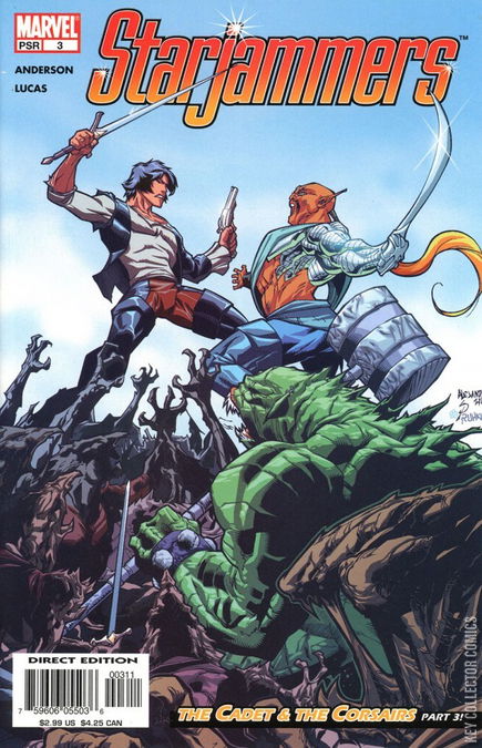 Young Tolo Hawk has been through hell, and as far as he’s concerned, the interstellar pirates called the Starjammers are responsible for every minute of it. So what could happen to change his opinion of these uncouth pirates? This naïve cadet and these gruff corsairs may have more in common than they thought… Despite his best efforts not to be captured alive. Tolo is taken captive aboard the pirate ship, where he is forced into menial labor. Raza, though gruff and uncompromising, takes the kid under his wing, saving his life when the other Thorn pirates want to kill him. When Raza tries to convince the patriotic cadet that his Union Defense Corps have committed atrocities against other races, Tolo refuses to believe him, though a seed of doubt is planted. When the Starjammer encounters and raids a U.D.C. cargo ship, Tolo begs Captain Kalyx not to kill the innocent crewmen, and Kalyx grudgingly agrees. The crewmen take their story back to Princess Sabra who, manipulated ba Anazar Prime, issues a decree that the Starjammers are to be stopped at all costs. Soon afterward, two U.D.C. attack vipers close in on the Starjammer. The space pirates look doomed, but before the battle can begin, a tremendous energy storm blasts the vipers and the Starjammer, leaving them all dead in space. Seeing his chance to escape, Tolo makes his move...