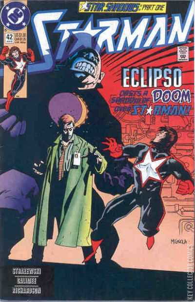 Part 1 of the 4-part 'Star Shadows': Starman seeks the assistance of solar energy expert Dr. Bruce Gordon to learn why his powers have gone awry and winds up with more than he bargained for, including untold clues to his origin and an encounter with Lobo and Gordon's dark side...Eclipso!
