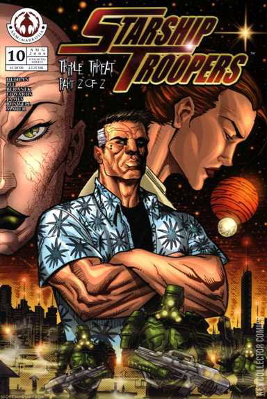 Worlds collide as ‘Triple Threat’ reaches its climatic conclusion! It’s the Vandals versus the Tigers versus the Reaper Cell in a battle that nobody can win! And when a conspiracy against the Federation is exposed who will stand for it, and who will stand against it? One thing is sure, after this issue Starship Troopers will never be the same again!