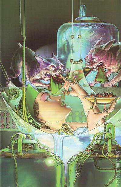 All in the Cards: Galatia and Bru blast off-station and The Dome's patrons take bets on their progress, as they run the Brigade gauntlet. Chasing the gals in a Brigade Tiger, the hapless Dwannyun accidentally shoots down Ronnie's agents, sending their captive, Erotica Ann, crashing into the station. Bru and the Cap escape the Brigade, but will they find the tracking device that Kalif has attached to their ship? The penultimate issue!