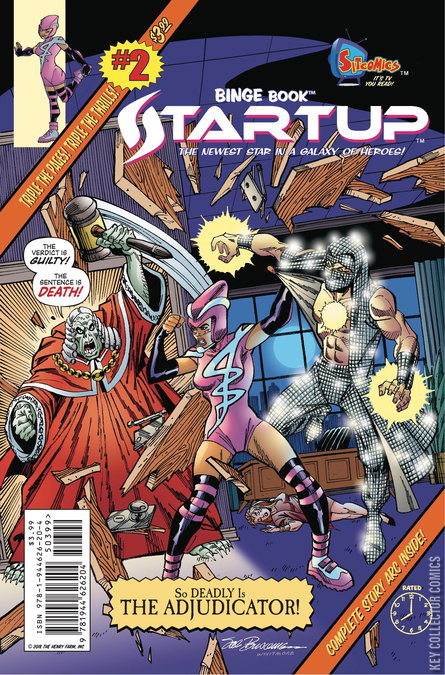 A monstrous vigilante is killing off super-villains! Can the sensational speedster called Startup stop him? Does she even want to? Darin Henry, Craig Rousseau and legendary cover artist Sal Buscema join forces to bring you this triple-sized, standalone epic featuring the origin and first appearance of The Adjudicator!