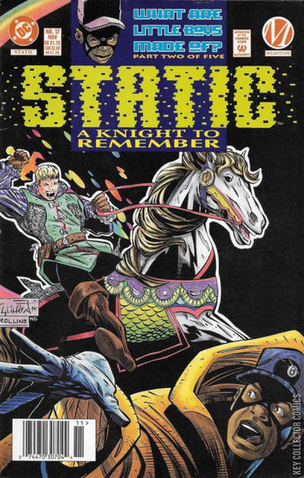 WHAT ARE LITTLE BOYS MADE OF? - Part 2 of 5. Static faces would-be hero Palisade, an armored knight who leaves darkness in his path. But Palisade is convinced that he and Static are at cross-purposes and winds up endangering Rick, Rick's injured friend and Frieda.As Static tries to get Rick and his friend to the hospital, they are intercepted by Palisade, who tries to pick a fight with Static. Static finally talks Palisade out of fighting and gets Rick to the hospital. Virgil now has to deal with the fact that Rick is really gay. Frieda and Virgil discuss the fact Rick is gay and we learn that Virgil has a certain prejudice. Static confronts Palisade and get into a big argument on how to be a superhero. We see Virgil and his friends discussing their comic book. Static finally stops Palisade from trying to impress other people, and also stops him from going after the Blood Syndicate. Rick tells his friends that he is gay, all of them!