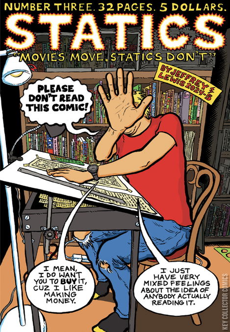 Indie-comix fiction and non-fiction short stories, with some unexpected overlaps, written and drawn in a 90s b&w style by musical cult figure Jeffrey Lewis. A smartphone-wielding superhero team sets out to topple the Patriarchy, a sea monster is reported to be causing havoc in the Caribbean, and Jeffrey Lewis returns to oversharing autobiographical sex therapy narratives with his sentient drawing table as his only confidante. Movies move, statics don't!