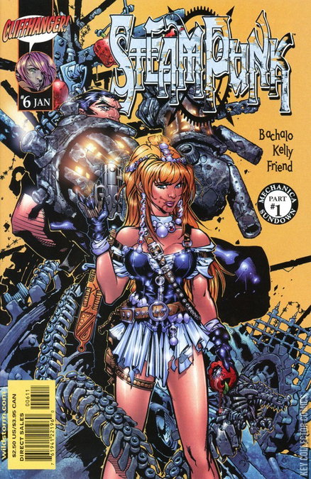 The second STEAMPUNK story arc begins in part 1 of the 3-part "Mechanica Sundown"! Cole Blaquesmith sets out with his ragged gang of steampunks, seeking to fill in the gaps of his memory so that he can find the weapon that will surely mean Absinthe's destruction.