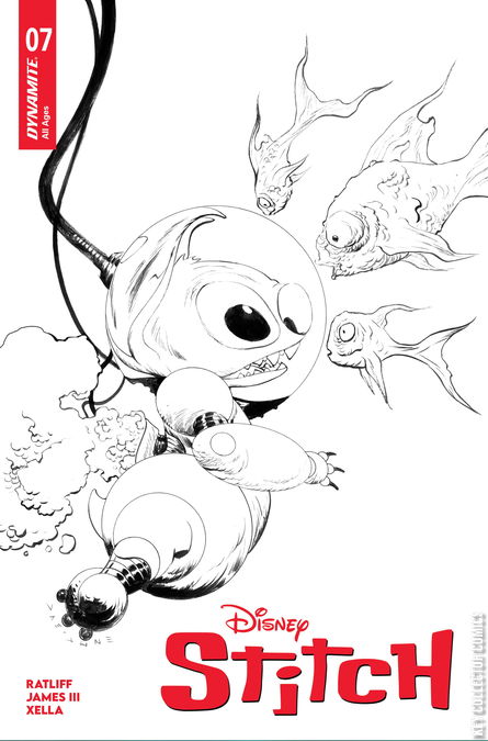 BEHOLD — THE TOWER OF BUBBLE! In his never-ending quest to discover new avenues for his evil schemes, Dr. Jumba realizes that there’s a huge reservoir of untapped potential all around him in the world’s oceans — if only its inhabitants could communicate with us “Dry Landers.” Animated by this inspiration, the bad doctor quickly creates a submersible machine that grants all marine dwellers the power of speech — only to have it hijacked by the irrepressible Experiment 626! As Stitch rides the Basic Underwater Translator into the briny deep, a thousand new conversations bloom in his wake (including some disconcerting discussions among disparate dolphin factions). And while Jumba and Pleakley race to recapture his rogue invention, this chatty new life aquatic is about to make its presence known — both above and below the surface! Amphibious authors CONNOR RATLIFF and JAMES III join artist GRETA XELLA for the ultimate undersea adventure in Stitch #7 — featuring fully submersible covers by EDWIN GALMON, JAE LEE & JUNE CHUNG, CIRO CANGIALOSI, and GEORGE KAMBADAIS!