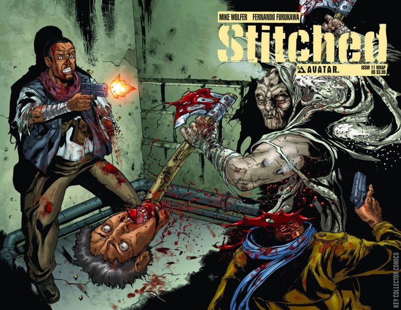 What began as Garth Ennis' modern tale of horror rooted in ancient, supernatural legend continues with Mike Wolfer and the amazing new artist Fernando Furukawa! Hidden in an opulent mansion in the jungles of Sri Lanka, antiquities collector Phillip Strathmore has just arranged for the purchase of the crown jewels of his incredible menagerie: The only surviving Stitched remaining on the Earth. And before the end of this issue, the full, true origin of the black magic which created the Stitched will be revealed for the first time! Stitched #11 is available with a Regular cover, Wraparound cover, Gore cover, and a special Ancient Evil retailer incentive cover by Fernando Furukawa.